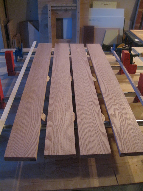 - Joinery includes through grooves on rails and tenons on stiles. Frames are rabbeted and then chamfered to give a nice shadow line along the panel/frame joint.